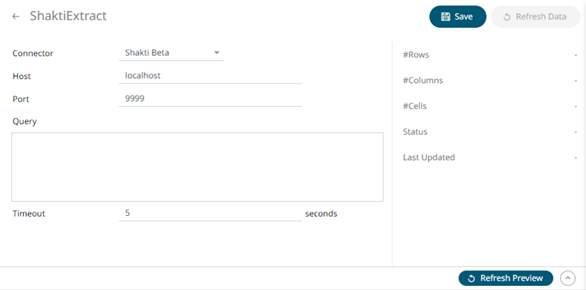 1. On the New Data Extract page, select Shakti Beta in the Connector drop-down list.