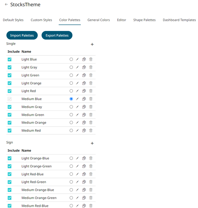 For more information on how to create, modify, duplicate, or delete Single, Sign, Text, Sequential, or Diverging Palettes, refer to the sections below. |