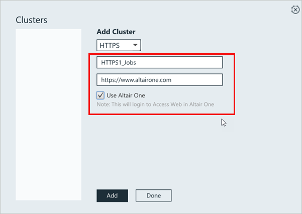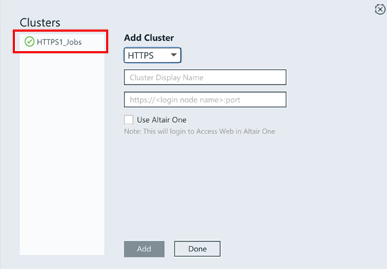 Add and connect to Altair One server using HTTPS to submit and monitor jobs.