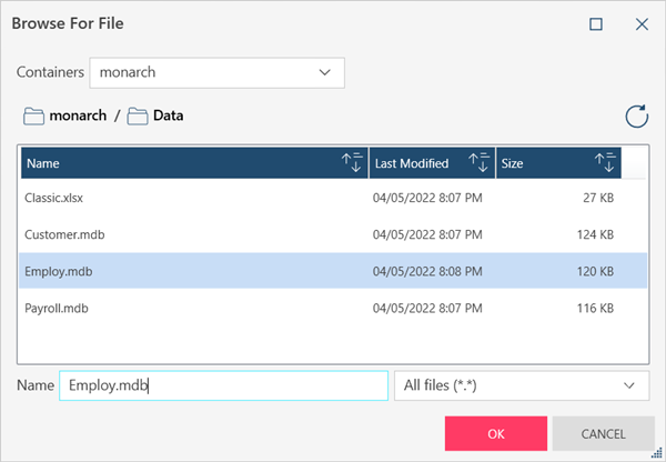 A standard Browse for FIle dialog allows you to select a source file on the cloud.