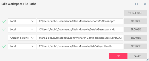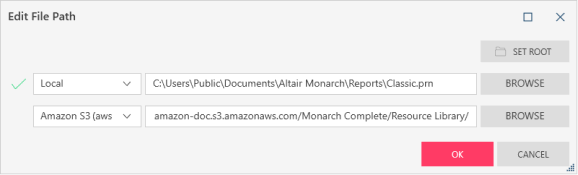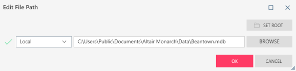 NOTE: If you edit the file path of a Monarch Report node, the Edit File Path dialog will include the paths of all reports (i.e., local and web) loaded in the node.