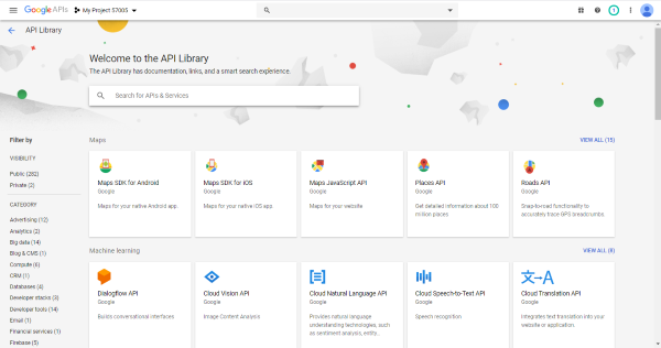 The Google APIs page is displayed: