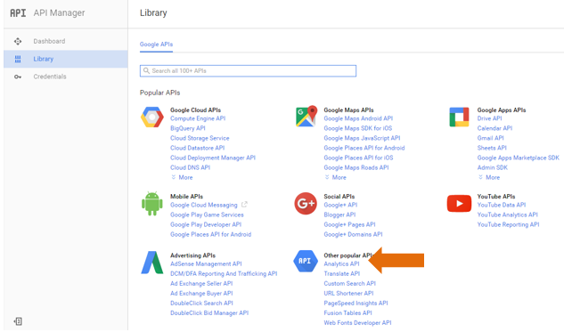 In the API Manager, click Library to display the Library page and select Analytics API.