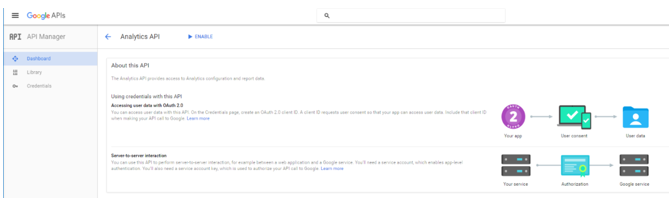 Before using the Google Analytics connector, users must request for their service provider account access from the administrator.