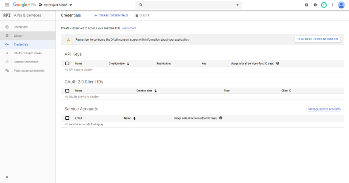 On the API Manager section (left of the page), click Credentials.