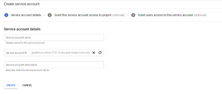 The Google Analytics connector works on a service account authentication mode. To create a service account, you must first create a project.