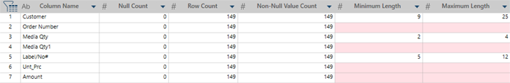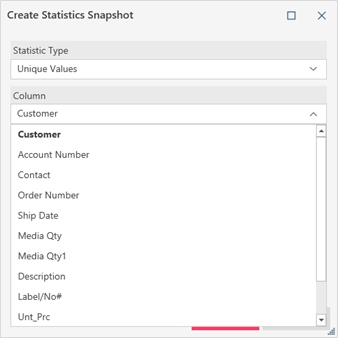 The Statistics Type drop-down allows you to choose whether to create a table with various statistics (e.g., Null count, row count, blank count, etc.) or create a table including only counts of unique values.
