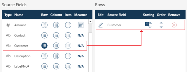 If you change your mind and no longer wish to use the selected field as a row, remove it from the Rows panel by clicking on the Remove icon to its right.