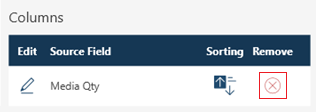If you change your mind and no longer wish to use the selected field as a column, remove it from the Columns panel by clicking on the Remove icon to its right.