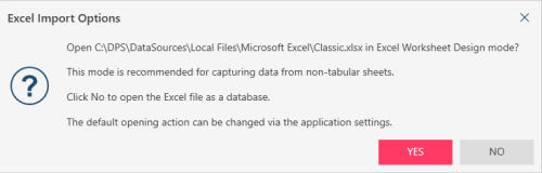 Drag the Excel worksheet into Monarch Data Prep Studio and select Yes when the Excel Import Options dialog displays: