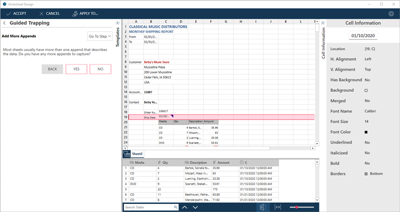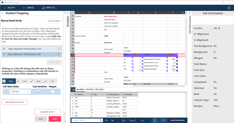 Samples of trapped data are displayed on the preview grid (the panel below the worksheet).