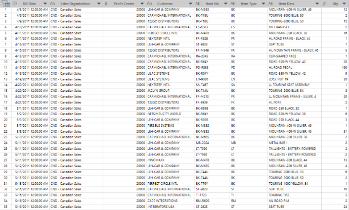 For example, records like these, that show Customers and Items and Quantities: