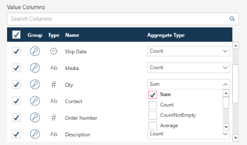 In the example above, we are including Qty in the grouping and have selected Sum as an aggregation.