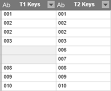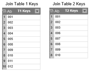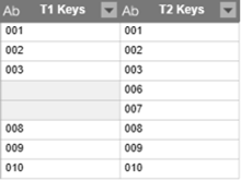 Note that only one record for left key value 001 is retained in the result, even if there are three records that have this key.