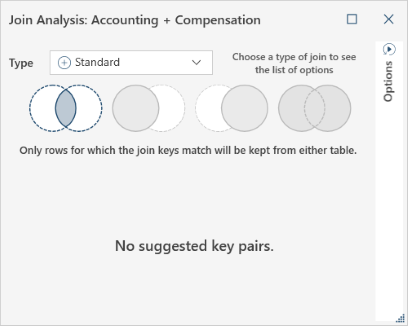 located at the bottom right of the dialog.NOTE: If you want Monarch Data Prep Studio to analyze your two tables and recommend join keys use the Join Analysis feature to do so.