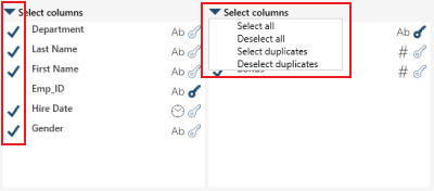 Select or deselect all columns