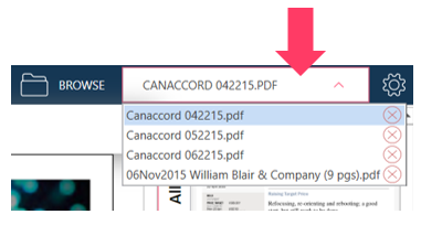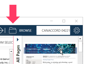In PDF Table Extractor, select BROWSE from the Application Menu. Use the standard Open dialog box to locate your document and open it.