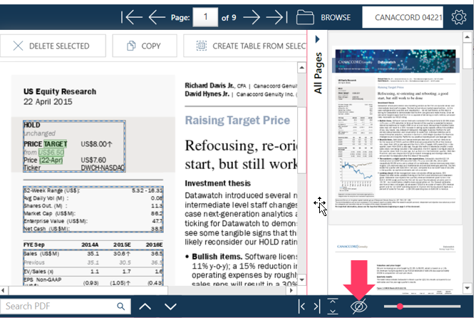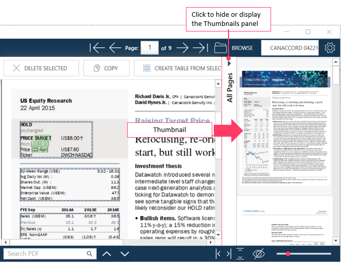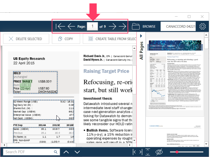 The PDF Table Extractor provides tools that allow you to view and inspect your document and its pages.