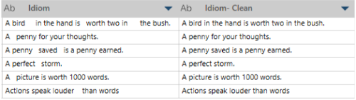 In this example, Idiom is the original column and Idiom - Clean shows the new values with all spaces collapsed.