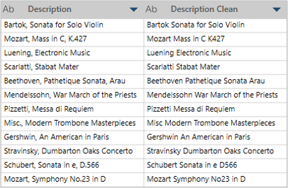In this example, Description is the original column, and Description Clean is the new column after Remove Non Alphanumeric Characters is applied: