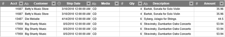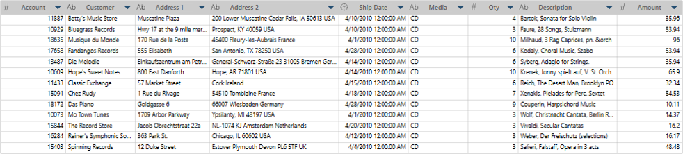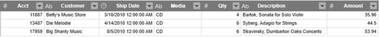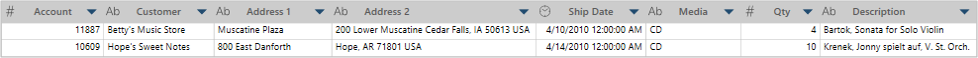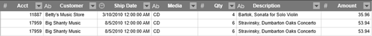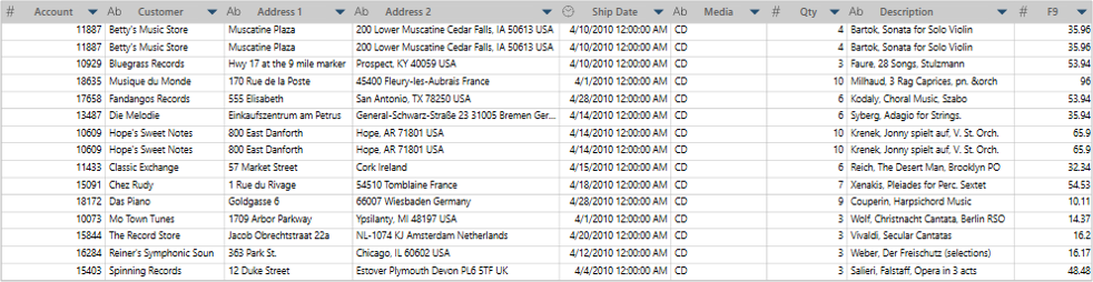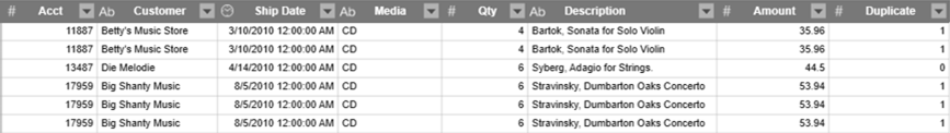 We have 2 sets of duplicates: Betty's Music Store has 2 duplicate records and Big Shanty Music has 3 duplicate records.