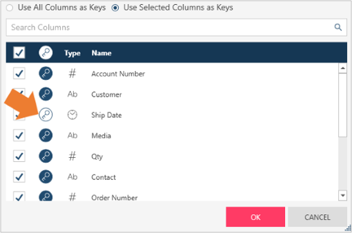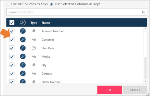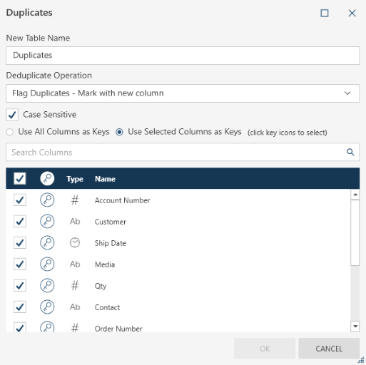 6. Unselect/select the columns you want to use in evaluating duplicates.