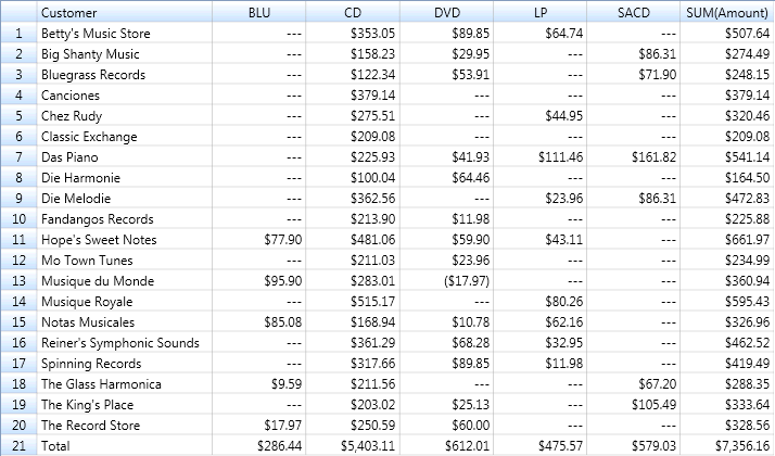 An example of a crosstab summary appears in the following illustration.