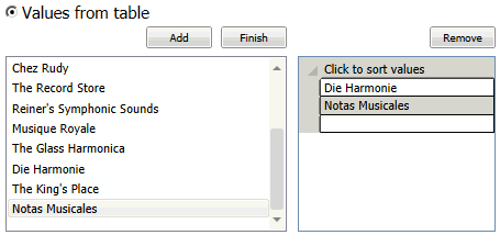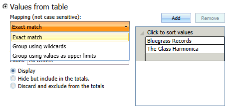 Select Values from table to create a list of specific values that Monarch Classic will use for each key field, as well as specify the mapping of the values to that list.