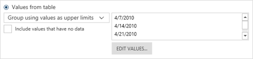 If you selected the Upper Limit Values option, use the New Value button to add each upper limit value to the Specified or Upper Limit Values list, then click OK to close the dialog.
