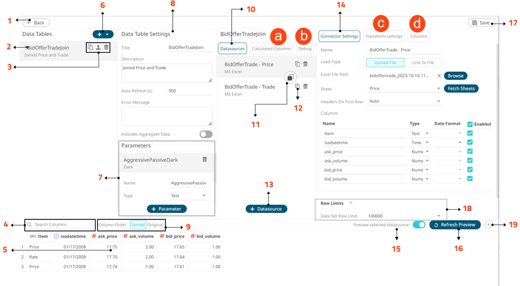 The Workbook Internal Data Table Editor layout is displayed as below, where in this example, there are joined data sources: