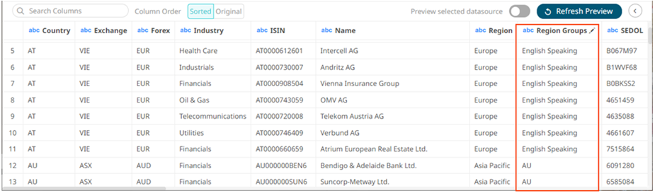 These new custom group columns can be used identically to a source text column, categorizing and filtering data.