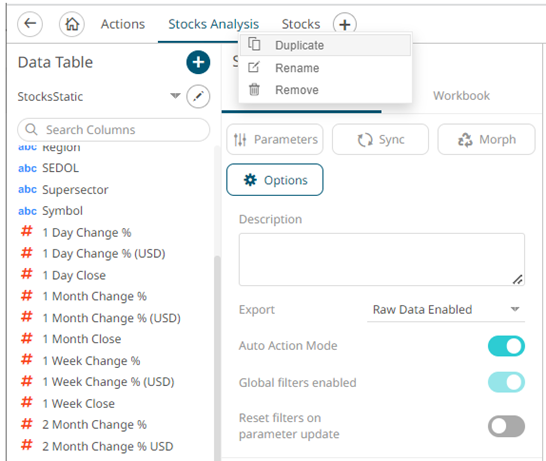 1. Right-click on the dashboard tab and select Duplicate in the context menu.