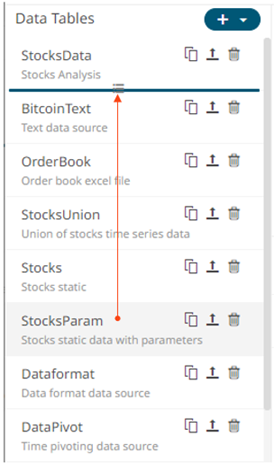The order of the data tables can be rearranged.