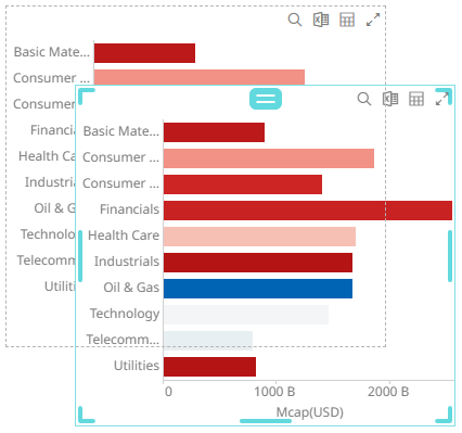 If you initially chose to copy, a duplicate of the dashboard part is displayed.