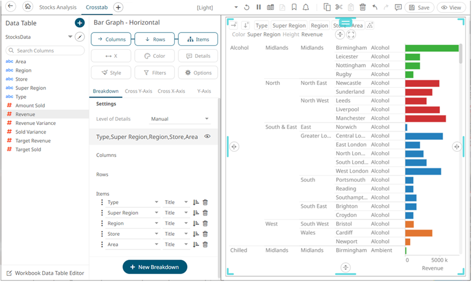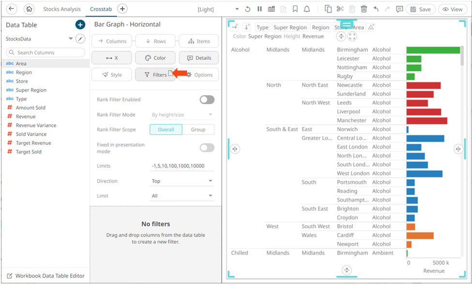 2. To add to the filter, drag text columns from the Data Table pane to the Filter drop area.
