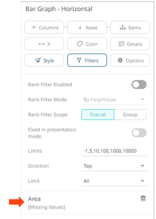 3. The column is added and the Visualization Settings pane changes to display the Filter properties.