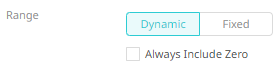For most of the visualizations with numeric axis, you can set the visible range for the Y and/or Y variable which can either be calculated dynamically (the default, enabled Dynamic). Check Always Include Zero box to let the axis scale start at zero and grow to any number that may show up in the data. Or set between predefined limits by clicking Fixed. This displays the Min and Max text boxes that are populated with the default values taken from the data set. |