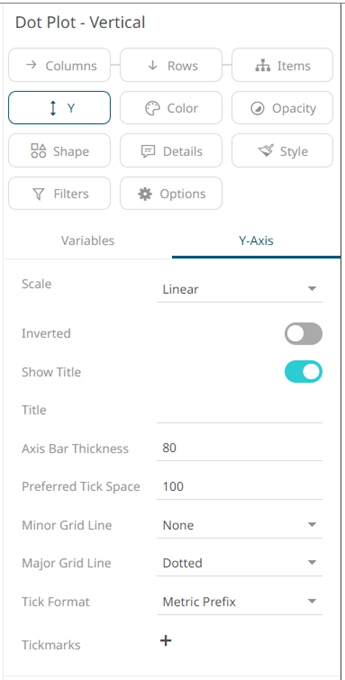 q Y-Axis variable drop area then selecting the Y-Axis tab (for Vertical Dot Plots) or
