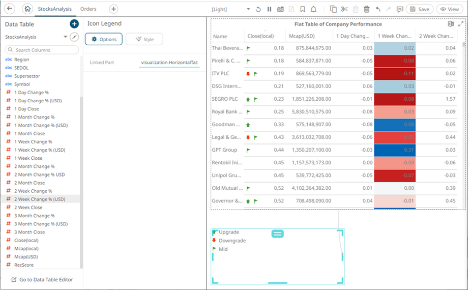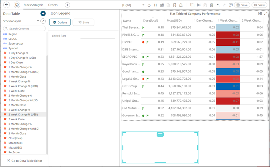 The icon legend is connected to its parent visualization and the link between them is displayed. The icon variables are retrieved from this visualization and displayed in the legend.