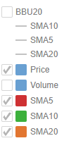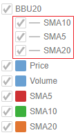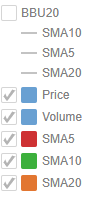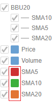 In the example above, for SMA5, SMA10, SMA20, the square represents the configured Custom Single color for each visual member.
