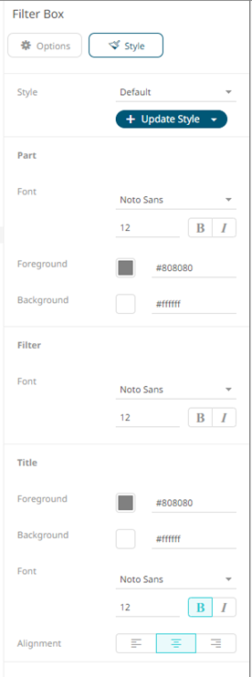6. To set the style of the Filter Box,