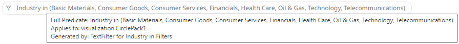 All of the predicates of the active filters are displayed. For this sample, there are four active filters.