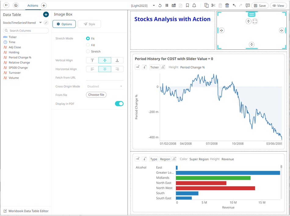The Image Box pane is displayed, and the Image Box part is added on the dashboard canvas.