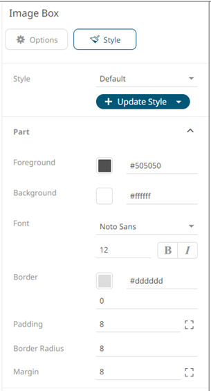 If published, the custom style configuration of the image box will be added to the Global custom styles list and can be applied to other parts.
