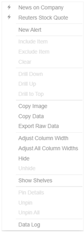 Allows exporting of data. Options include: · Copy Image · Copy Data · Export Raw Data · Copy Cell Data |
