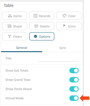 However, when the Virtual Mode option is turned on in the Table Settings, the table will be in a flat mode and the expand and collapse options will no longer be available.