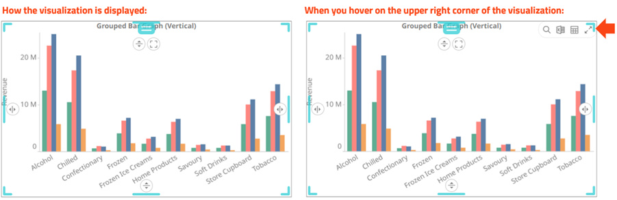 Maximizes the visualization to be displayed on the full dashboard area. |