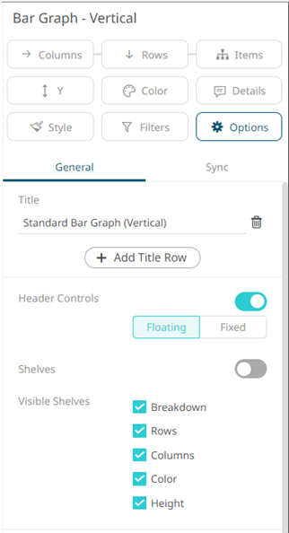 Header controls are made available in visualizations when the Header Controls option is turned on.