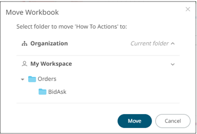 The Move Workbook dialog displays with the folder or subfolders that the user is allowed to move the workbook.