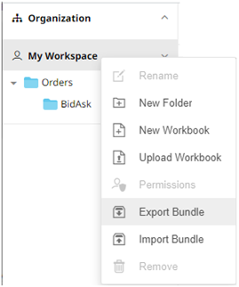 1. Right-click on a workbook or folder and select Export Bundle in the context menu.